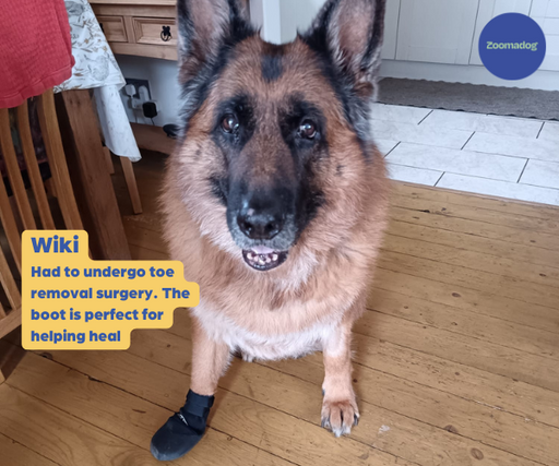 Check out medical dog boots if your dog needs wound protection, to keep an injury clean, or extra cushioning for arthritis. Most socks offer non-grip soles for traction. If your dog is a sighthound, there are specific designs for them. Socks generally should only be worn indoors, unless light outdoor use is indicated.