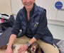 Once the brace has been placed around the dog’s leg, it is not necessary that the two white-trimmed edges meet, since the closure of the brace is by means of the blue straps and stabilisation is provided by the splints on the back of the brace.