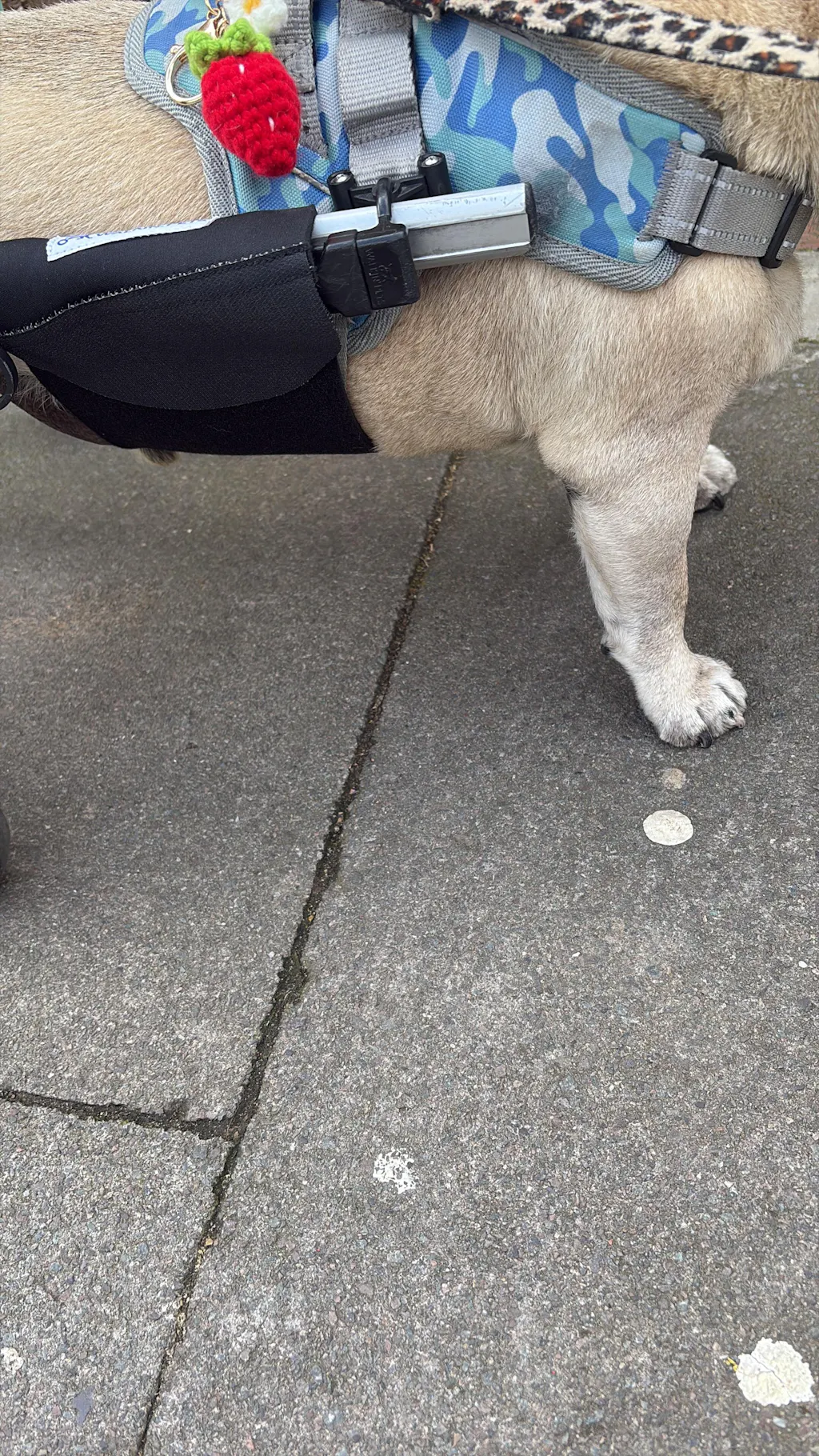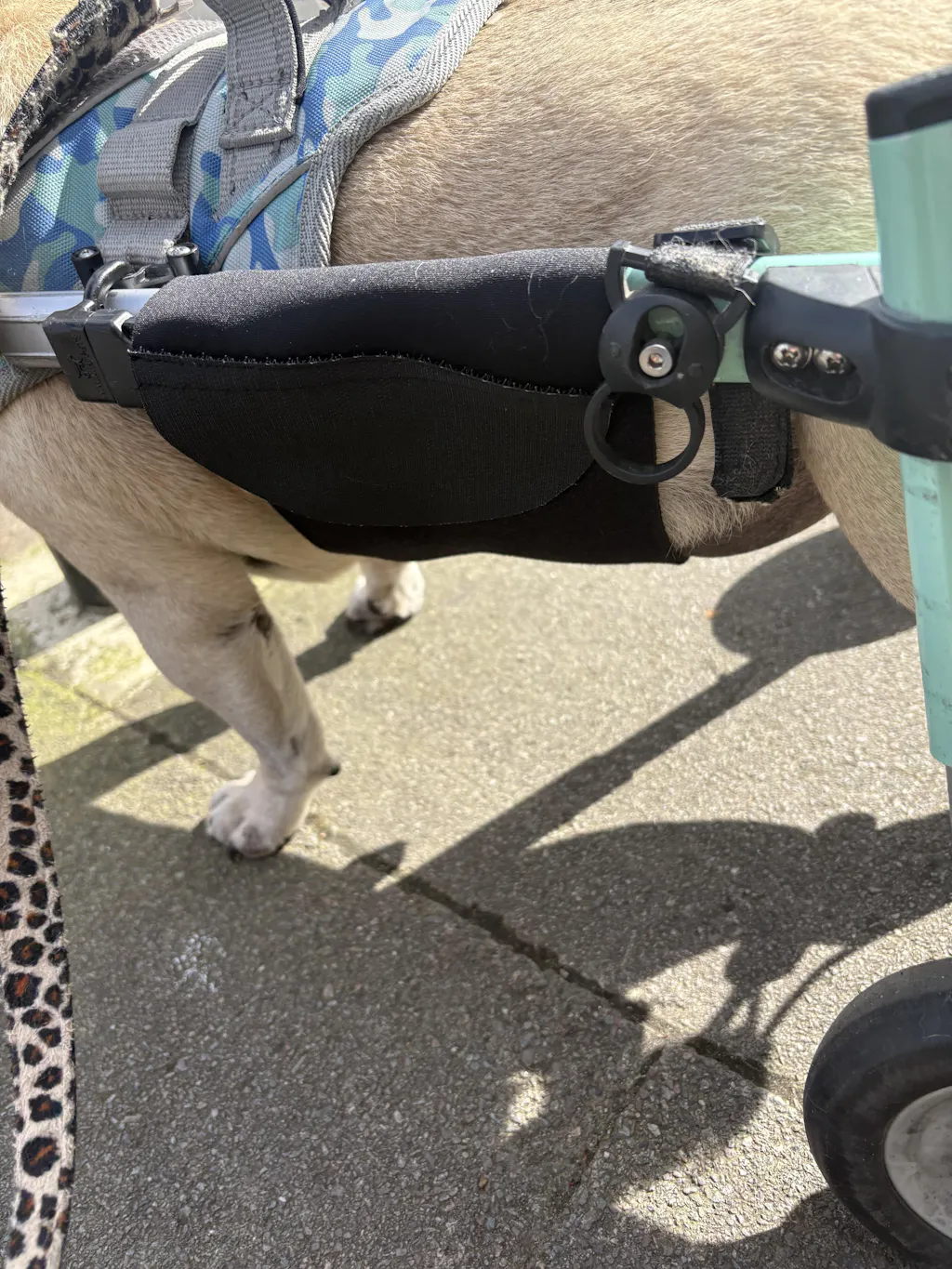 Our Walkin’ Belly Support provides additional support for your pet while in the Walkin’ Wheels wheelchair.