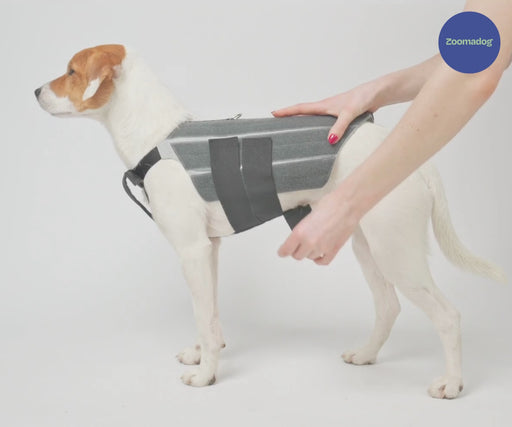 - Dog brace designed to stabilise the back from above & below