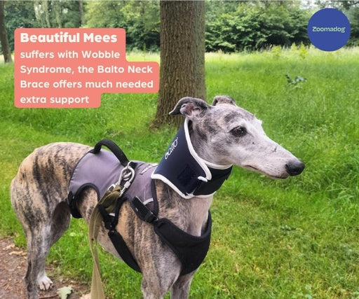 The brace will stabilise the neck and limit neck movement, helping prevent further injury. They can also help in specific cases of Wobbler’s Syndrome which affect the neck.
