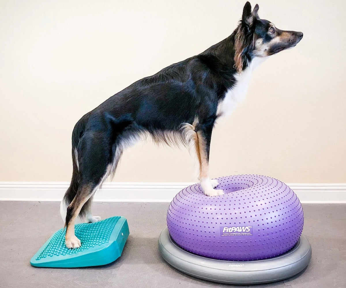 Combine the balance ramp with other FitPaws equipment, such as the K9Fitbone, to create a more dynamic exercise challenge.