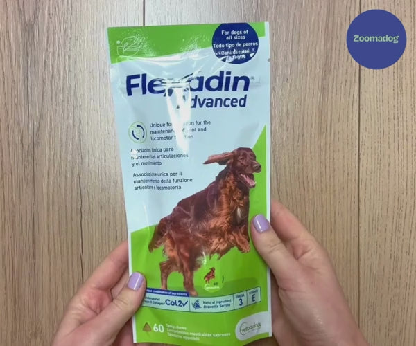 Flexadin Advanced Joint Support Chews for dogs are excellent for keeping your dog mobile, active, and comfortable every day. These tasty, once-a-day chews are packed with powerful ingredients that help keep your dog's joints healthy and flexible, supporting long-term comfort for dogs of all ages. Ideal for dogs showing signs of stiffness or slowing down, Flexadin Advanced helps maintain smooth, easy movement so your dog can keep enjoying walks, playtime, and all the adventures they love. Simple to give and loved by dogs, it’s an easy daily way to care for your dog’s joints and keep them feeling their best.
