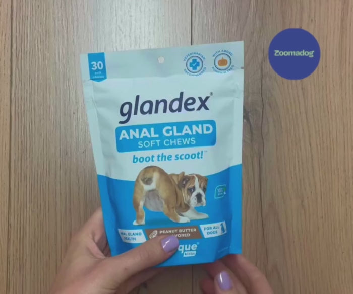 Glandex Anal Gland Support Chews for dogs are excellent for keeping the anal glands healthy and functioning properly. The patented formula uses a unique fibre blend to support bulky, firm stools, assisting the natural emptying of the anal glands every time your dog defecates. Other key ingredients, including omega fatty acids, help support a healthy inflammatory response and maintain normal histamine levels in dogs with seasonal allergies. Glandex also contains probiotics and digestive enzymes to support a healthy digestive tract, helping your dog recover and feel their best after occasional or persistent anal gland issues.