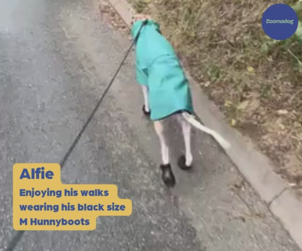 Lurchers do well in Hunnyboots as they are specifically designed for sighthound paws - long and narrow - so fit very well. They offer extra protection and grip allowing your dog to walk comfortably.