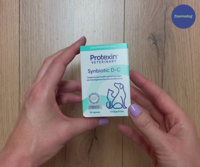 Protexin Synbiotic D-C capsules for dogs are excellent for supporting your dog's digestive health and maintaining a happy, balanced gut. Each daily capsule combines high-level probiotics with prebiotics to encourage normal digestive function and efficiency. The probiotics help top up the good bacteria in your dog's gut, while the prebiotics provide the nutrients those friendly bacteria need to thrive. This combination works gently to support digestion, promote healthy stools, and keep your dog happy, healthy and full of life everyday. The capsules make it easy to deliver to your dog, either open the capsule to sprinkle on their food or give it whole (or hidden in something tasty if they are a little fussy!)